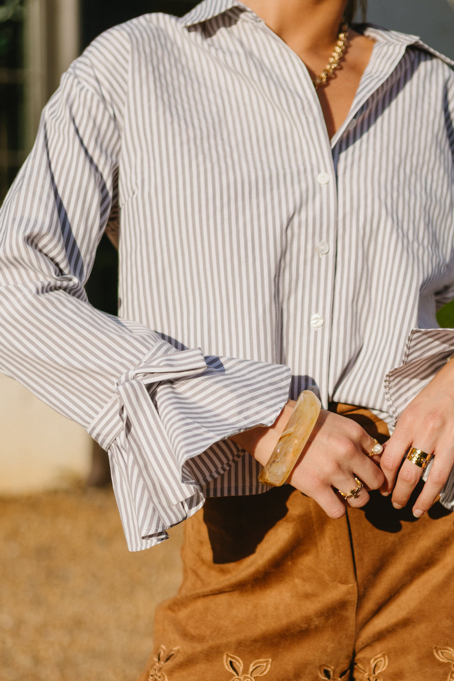 Grey and white striped shirt